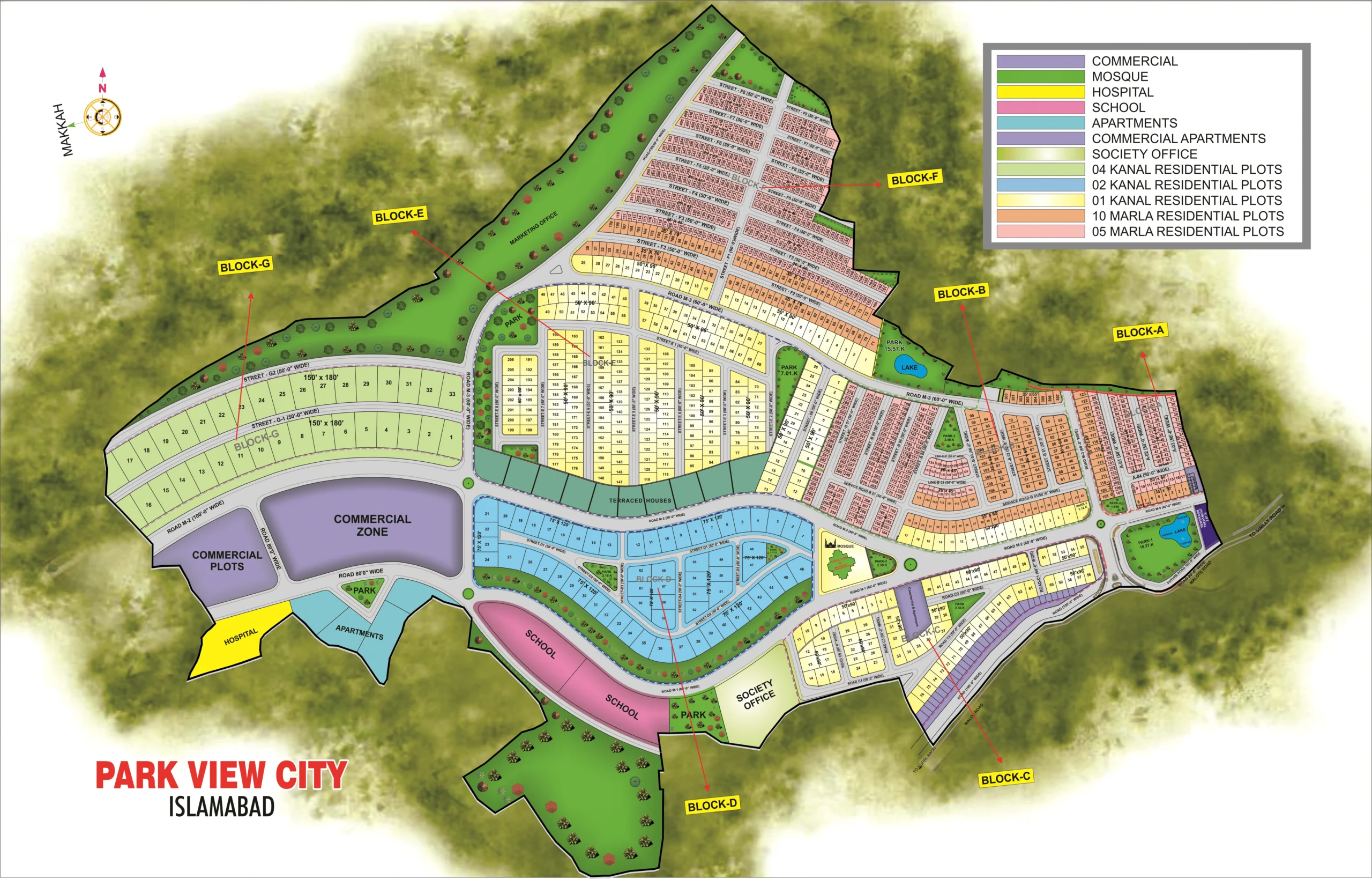 Below are the names of Park View City Islamabad blocks:
